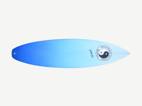 This board's designed for your older surfer (who still wants to ride a shortboard) and or a heavier surfer. The bottom has a slightly rolled nose entry through to a single concave into a sedate concave V. This makes for an easy, fast and manoeuvrable board to ride. Has a fairly rolled deck into a low mid rail. A wider nose for increased planing area to add to speed & early wave entry.
