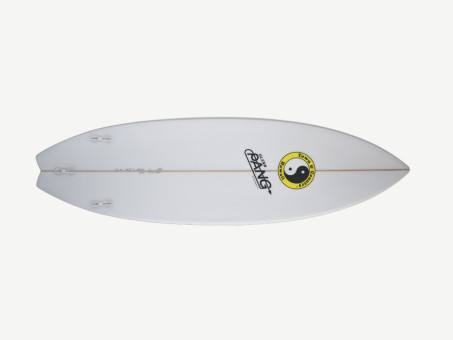 The HRT is another board which has some of the characteristics developed for the Dragon Fly model. The main design aspect is the deep single concave which runs through the board with added vee coming off the swallow tail. This gives the board extra speed allowing it to turn on a dime while still maintaining control. This board is midway between a high performance shortboard and a groveller.