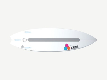 The Bunny Chow has been Jordy Smiths board of choice for his World Tour campaigns in poor to fair surf. Designed around Jordys large build and dynamic approach, the Bunny Chow is equally suited to be on rail or the air. Jordy rides his 61 x 11.9 x 19 x 15.27 x 2.5 at 31.6L with 5.6 of nose rocker and 2.03 of tail rocker. The Bunny Chow rails are full to provide maximum volume. The rocker is staged to accommodate Jordys power.
