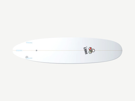 A best seller for 10 years, this mini-longboard bridges the gap between the more performance oriented M-13 hybrid model and our longboard line. Low entry rocker for trimming and enough tail rocker to stay high performance. Bottom goes from flat entry with concave, to vee out the tail.