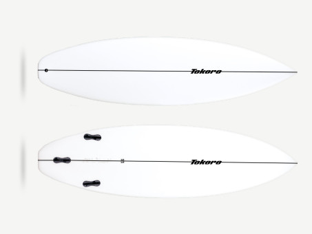 This model has a bit more area in the nose outline and it has a normal tail width. The wider nose outline assists with paddling, stability and projection. An overall lower rocker gives this board a lot of speed, glide and drive through turns. There is a mild full concave that runs through the entire board with a slightly double in the tail area.