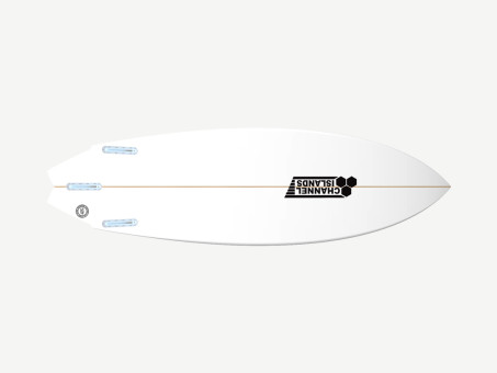 It was originally designed and hand shaped by Britt Merrick when asked to compete in a surf contest where shapers ride retro boards they have created themselves. Inspired by a twin fin that his father Al had shaped for himself in the late 70's, and that a friend had recently found at a garage sale, Britt took a template off it, drew it on a blank and updated the rocker to have a more modern feel with added positive drive and carving ability. Thus, the new CI Twin Fin was born. The Twin Fin has been tested by Britt, Dane and CI Factory pilots in everything from weak beach breaks to good Rincon and has proved to be a fast and fun wave catching machine. To offset negative characteristics of a usual high-volume retro design, the Twin Fin's rails are tapered and relatively thin feeling for added sensitivity and responsiveness.